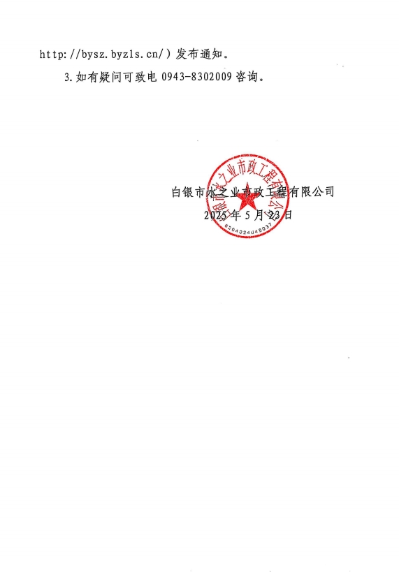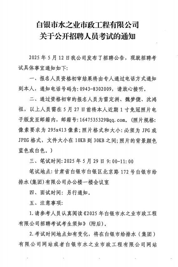 白銀市水之業(yè)市政工程有限公司關(guān)于公開招聘人員考試的通知